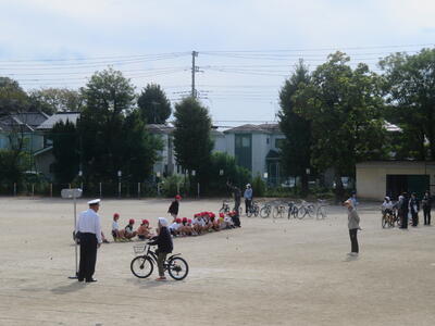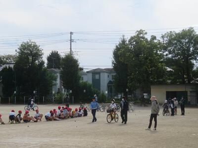 校庭を模擬の道路に見立て、実際の自転車運転を通しながら、