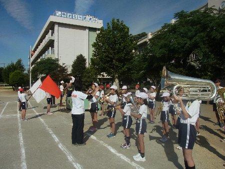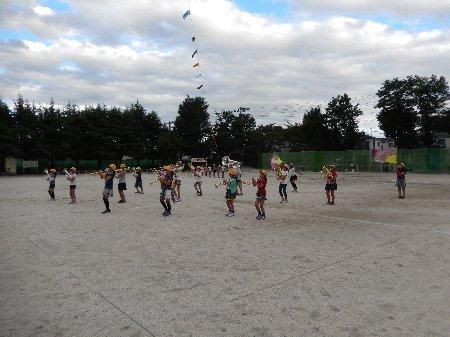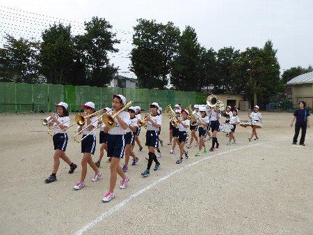 そこで金管バンドクラブ、バトンクラブは運動会でのドリル演奏にむけての練習はいよいよ仕上げの段階です。