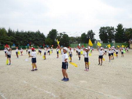 3,4年生の表現種目の練習は、手に旗を持って、早くも完成形に近づいているのでしょうか。
