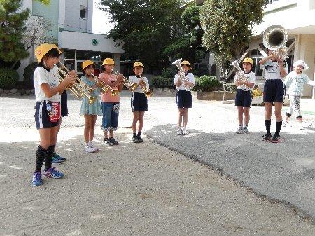 朝から雨模様のお天気でしたので、なかには長靴姿で演奏という子どもたちもいますが、ここまでの仕上がり具合をご覧ください。