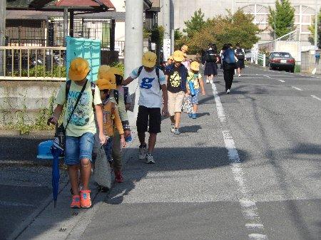 子どもたちが週始めの荷物を手に通学班の集合場所に集まってきました。