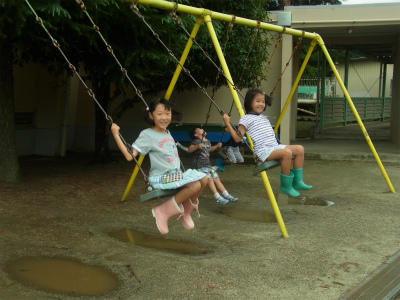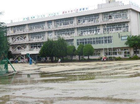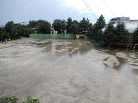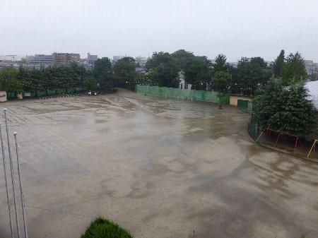 このところの雨で、校庭はすっかり水浸しになってしまいました。