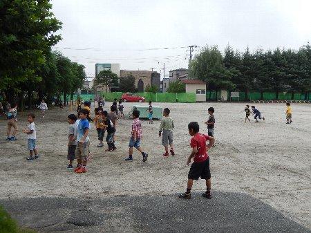 水はけのよい武里小学校の校庭。雨上がりでも、比較的早く使用できます。いつも以上に子どもたちの元気な声が響いていました。