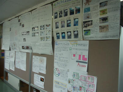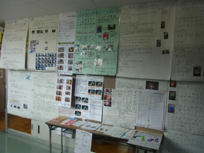 夏休み中にがんばって完成させた自由研究が掲示されています。様々な研究があって、見ているだけで勉強になります。友達と作品を見合いながら、情報交換できるといいですね。