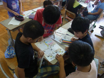 一方、まとめるのはインターネットあり、模造紙あり、紙芝居あり・・と効果的な方法を考えています。