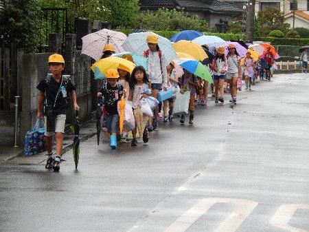 夕方から雨という天気予報もでているので、かさを手に登校の子どもたちも少なくありません。