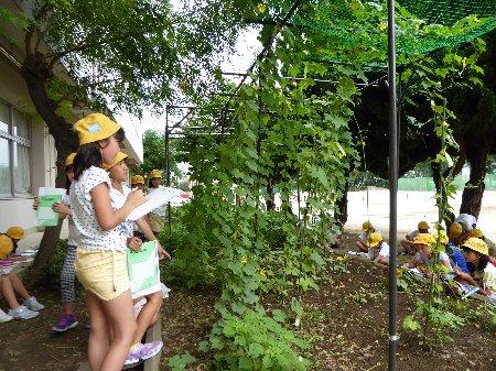 学級園のヘチマを観察し、絵と言葉で記録です。