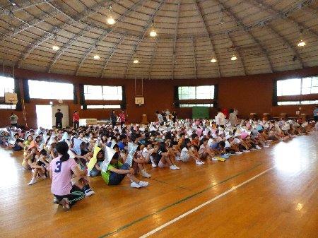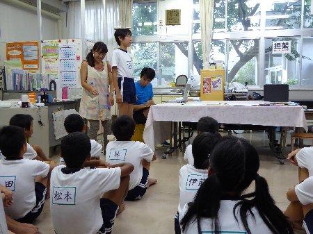 身体測定の前には、夏休みのあけの時期のよい機会ということで、養護教諭が「早寝、早起き、朝ご飯」の話をしていました。