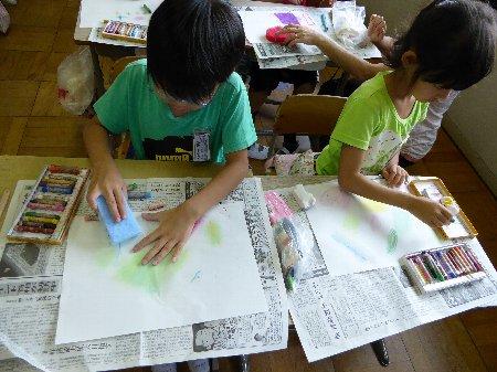 6年生の図工の時間は校内絵画展に出品する作品を描いています。