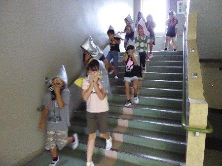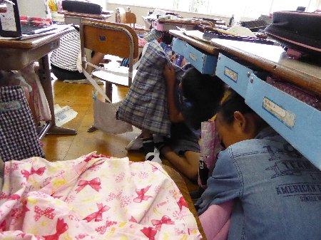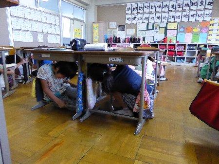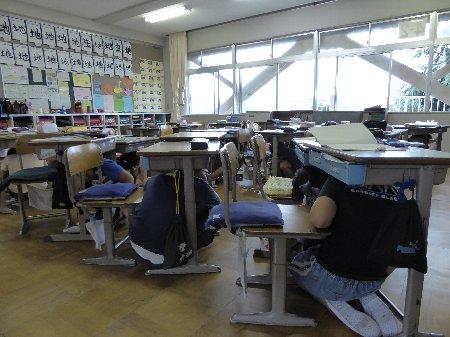 休み時間に地震が発生ということで、子どもたちが自分で判断し、行動します。