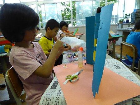 はさみをつかって切り抜いたり、折ったり、まるめたりして作る立体工作です。