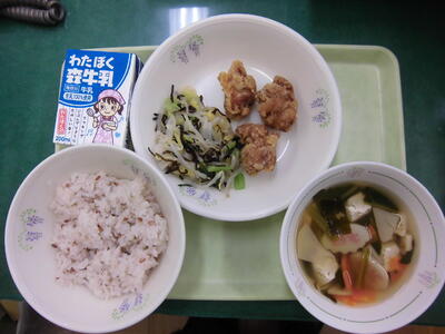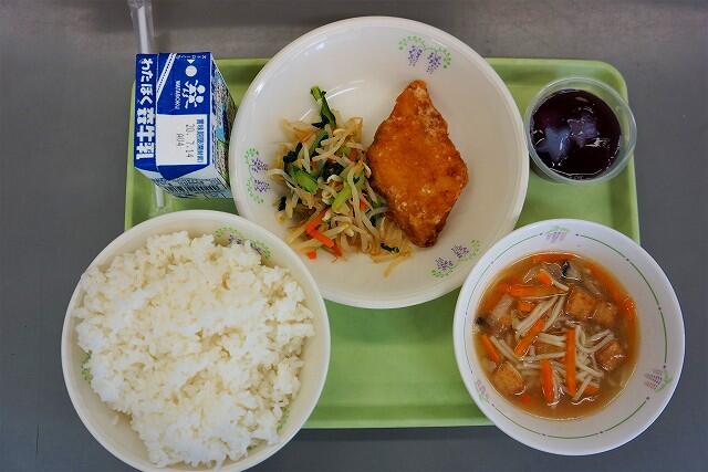 ・ごはん・牛乳・カレイの竜田揚げ・からしあえ・そうめん汁・七夕ゼリーです。