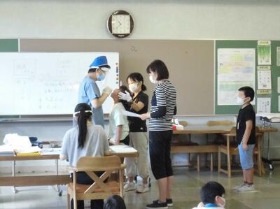 どの学年も静かに、お互いの距離を保って、順番に行うことができました。