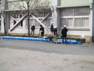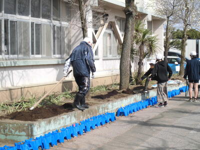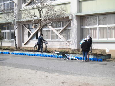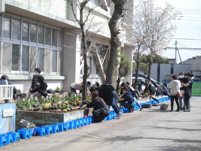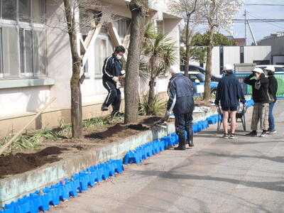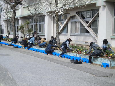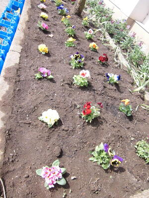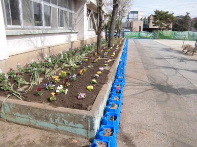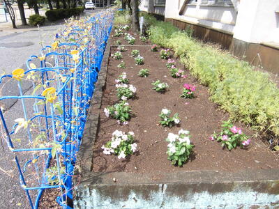 先日、環境委員の皆さんに花壇の花植えをしてもらいました。