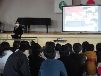 本日、3年生が教育委員会の方から『かすかべ郷土かるた』についての講習を受けました。