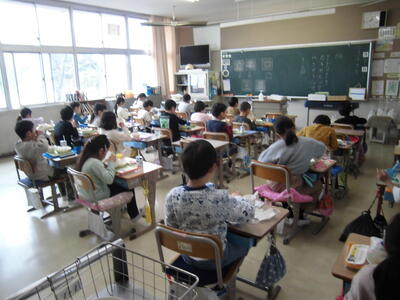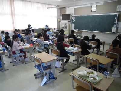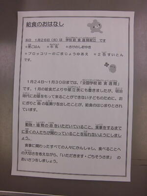 今週から、給食の配膳や飲食時の衛生面・安全面に十分な配慮をするため、給食着を全員個人持ちとしました。ご理解及びご協力ありがとうございます。