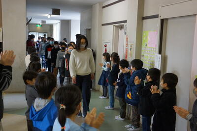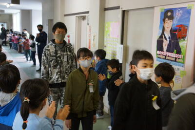 今までと変わった風景に、子どもたちも立ち止まって見入っていました。