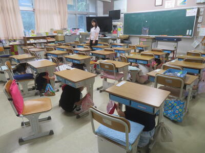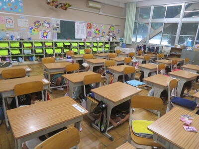 1学期の避難訓練のことを思い出し、しっかりと第一次動作ができていました。