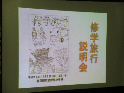 もうすぐ6年生が修学旅行に行きます。今日は、児童への説明会を行いました。