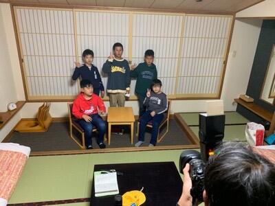 1組がお風呂タイムの間に、2組は部屋ごとの記念写真撮影。一晩ともに過ごす仲間との楽しそうな写真になりそうです。