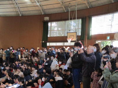 入学してもうすぐ1年。この1年で大きく成長したことがわかる、可愛らしく素晴らしい発表でした。毎月のことですが、朝のお忙しい時間にもかかわらず、体育館に入りきれないほどの(下の写真参照)たくさんの保護者の皆様が子供たちの頑張りを応援してくださいました。いつもありがとうございます。