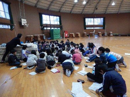 4年生以上の有志で結成したわかたけ合唱団。今日は4時間授業の後、給食、清掃で下校する日程なのですが、そのあと残っての練習です。