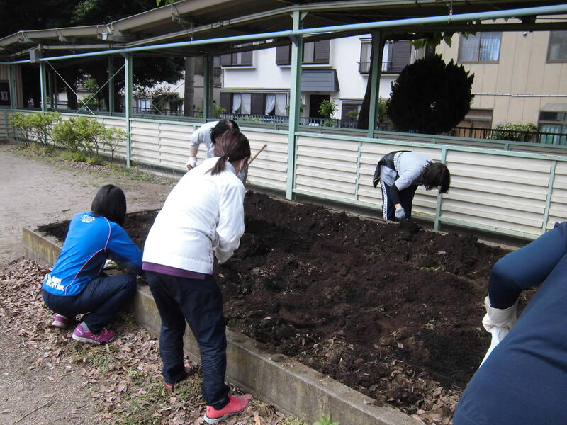 花だんの手入れをしたり、土を耕しうねを作ったりしました。