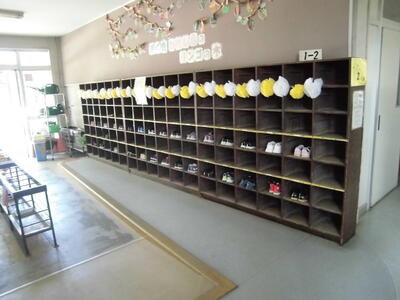 くつをきれいに下足箱に入れている子に、
