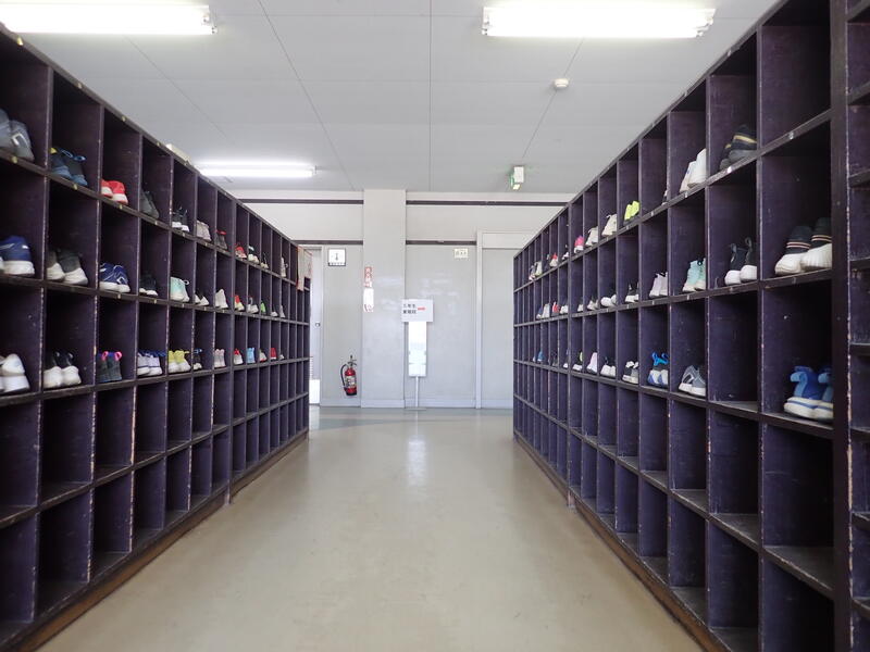 登校後の児童の下駄箱を見ると、みんなきちんと入っています。
