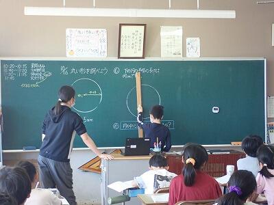 3年2組は算数。「円の中心の見つけ方は」みんなの前で発表です。