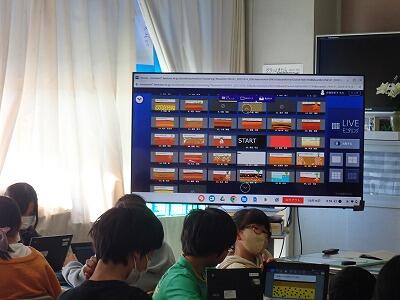 6年2組は理科。地層について、タブレットを活用して学習します。