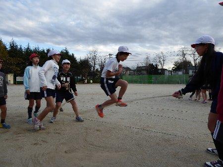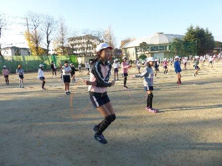 いろいろな跳び方を練習した後、リズムなわとびです。