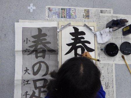 そこで、市内書き初め展金賞の子どもたちは、「選手」として市内書き初め展に出品する日まで練習を続けます。