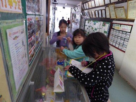 4年生は図工の時間に牛乳パックとストロー(わりばし)を使った動くおもちゃづくりです。