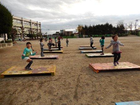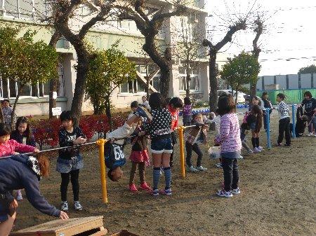 縄跳び練習台は相変わらずの人気です。自分が今挑戦している跳び方、二重跳びだったり、あや二重だったり・・・・みんながんばっています。