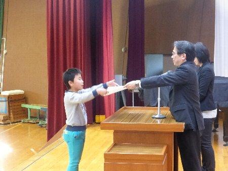 今日の表彰朝会では、夏休みの作品募集(図工)に応募して、すばらしい賞をいただいたみなさんと、先日の校内持久走大会で1位に輝いたみなさんの表彰です。