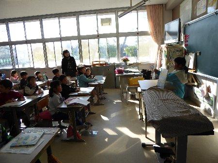 JTEの先生と英語の歌を歌っているのは4年生です。