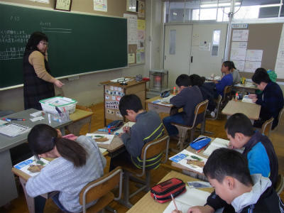 担任の先生と、JTE(英語を教える日本人の先生)の先生と一緒に、やりとりをしながら学びます。