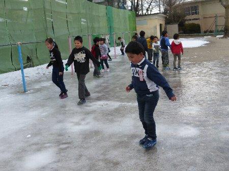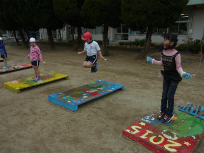 子どもたちの冬の間のお気に入りは、なわとび練習台でのなわとびです。