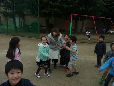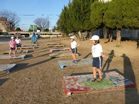 なかには、跳びなわをわすれて、「エアなわとび」の子どもたちもいるようです。