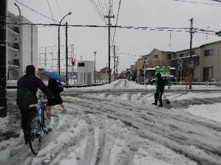 ちょうど子どもたちの登校の時間帯は目に見えるくらいの雪です。