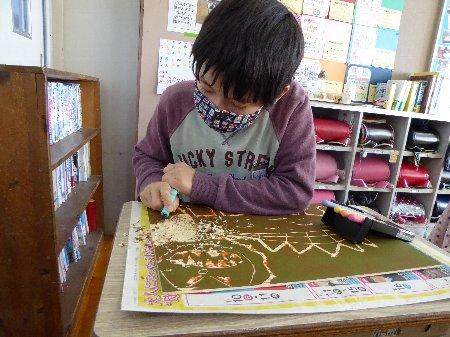 こちらの1年生が真剣に書いているのは、6年生を送る会で6年生にプレゼントする絵です。