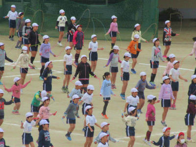 3学期のわんぱくタイムでは、リズム縄跳びを行います。