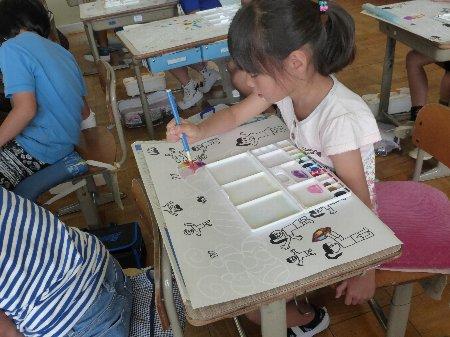 担任の先生が絵の具をパレットにだすところから、ていねいにお話をしていました。