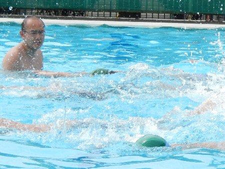 プールの前に