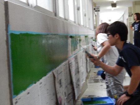 すてきな(?)グリーンラインの入った壁に変身しました。