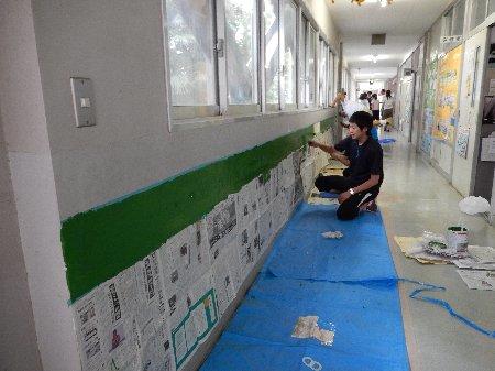 A棟の廊下の壁のペイント剥がれ(ビニルテープで隠していましたが・・・・)が気になっていました。