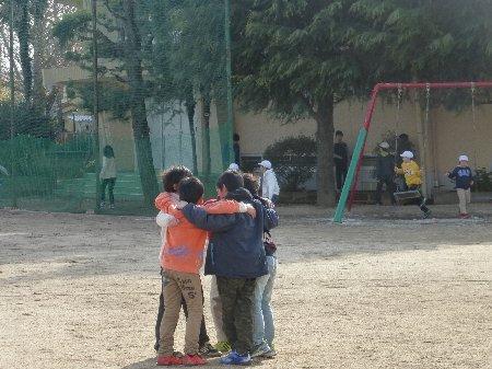 校庭は、朝のうちは凍っているのが幸いして、全面で遊べます。