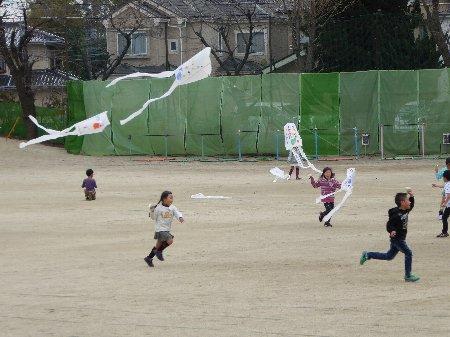 今日は風がないので、そのぶん一生懸命走らないとたこはあがりません。