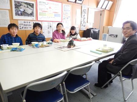 校長室での6年生との会食(給食)も、2組の最後のグループです。